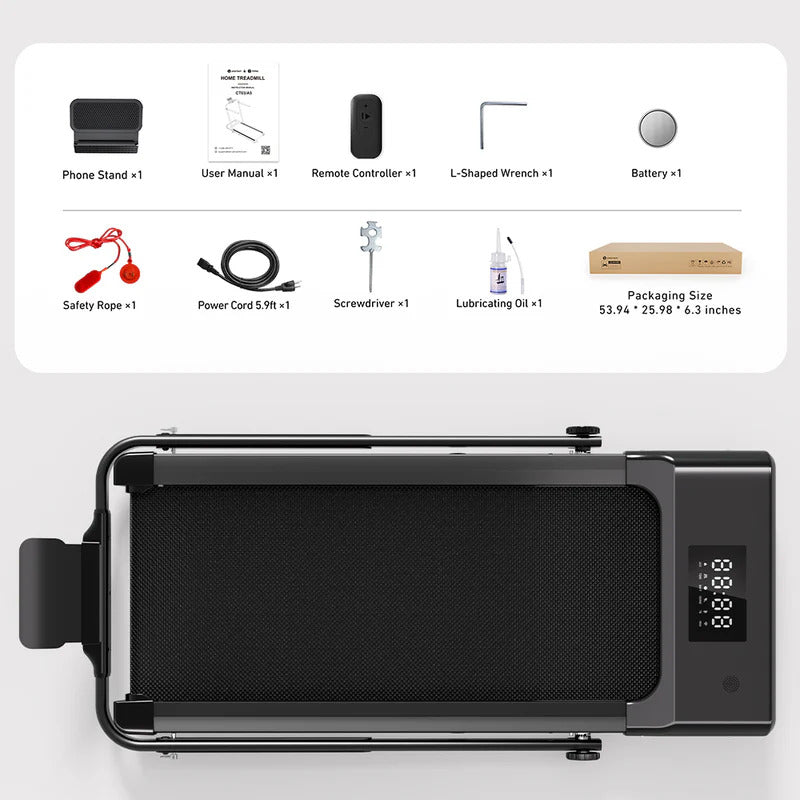 DeerRun A5 Pro 2-in-1 Folding Smart Treadmill (300 lb, 5.4% Incline, Under-Desk)