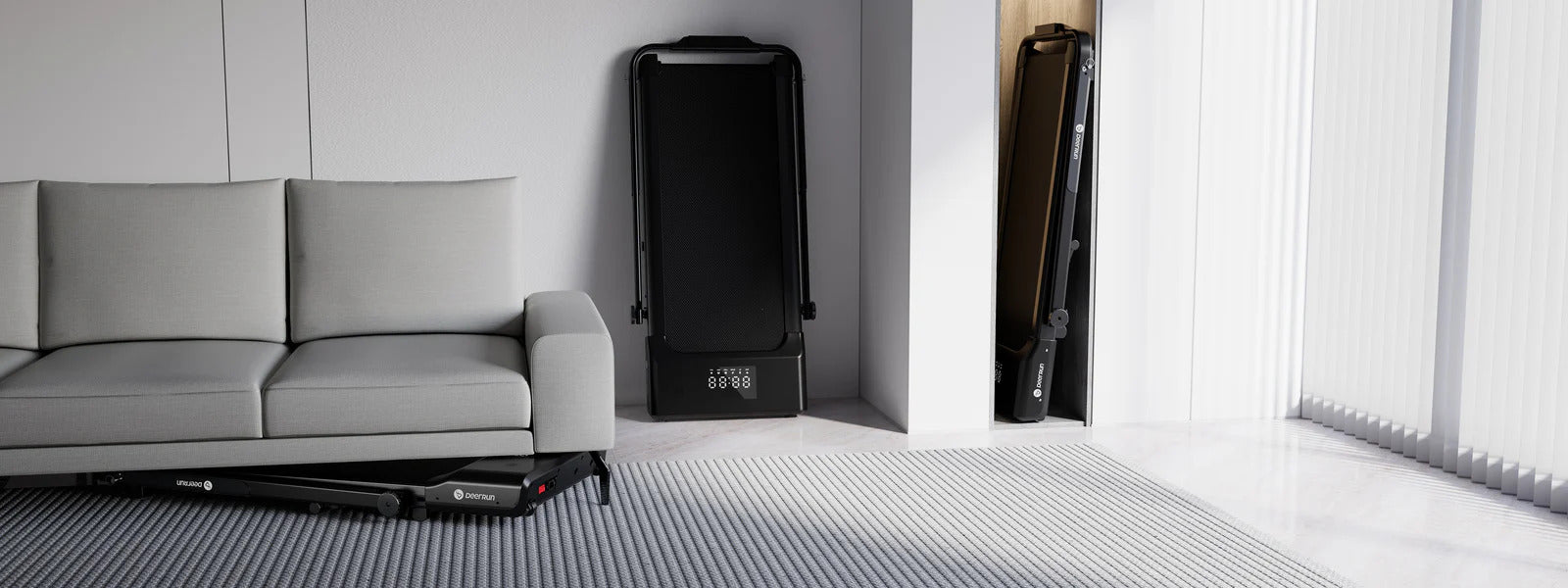 Bring walking and running workouts home without sacrificing space. The DeerRun A5 Pro is a 2-in-1 foldable treadmill designed for compact living—use it as an under-desk walking pad with the handrail down, or flip the handrail up for higher-speed jogging and running.